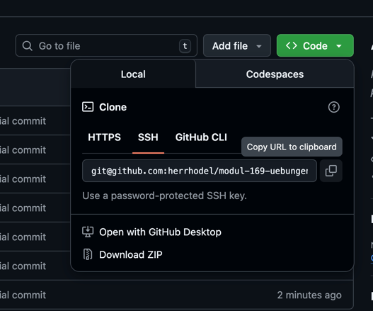 - Unter SSH, die URL mit dem Button rechts kopieren